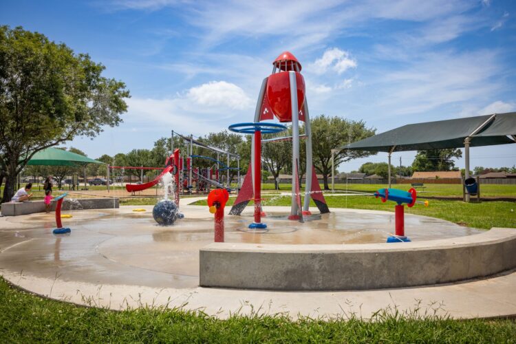 Burke Crenshaw park offers features a playground and splash pad creating the perfect spot to enjoy a day of fun!